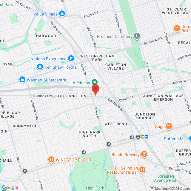 Dundas and Keele is accessible via TTC. Street parking is also available on Dundas, and there is a Green P lot on Keele just South of Dundas, opposite the fire station.